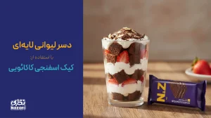 برای این دسر میتوانید از کیک اسفنجی کاکائویی سه لایه نظری استفاده کنید که بافت سبک و طعم متعادل دارد. این کیک را به قطعات کوچک مکعبی برش دهید و لایه اول در ته لیوانهای شیشهای شفاف قرار دهید. سپس یک لایه کرم ساده مانند مخلوط خامه و شیر یا کرم آماده روی آن اضافه کنید و در صورت تمایل کمی موز یا توتفرنگی خرد شده روی کرم بریزید. همین لایهها را یک بار دیگر تکرار کنید تا لیوان پر شود و روی دسر را با کمی شکلات رندهشده یا مغز خرد شده تزیین کنید. این دسر لیوانی در زمانی کوتاه آماده میشود و ظاهر آن برای پذیرایی در مهمانیهای کوچک یا عصرانه خانوادگی مناسب است. ترکیب کیک اسفنجی کاکائویی نظری با کرم و میوه، طعمی شبیه شیرینی قنادی ایجاد میکند، بدون آن که نیاز به پخت یا قالبگیری پیچیده داشته باشد.